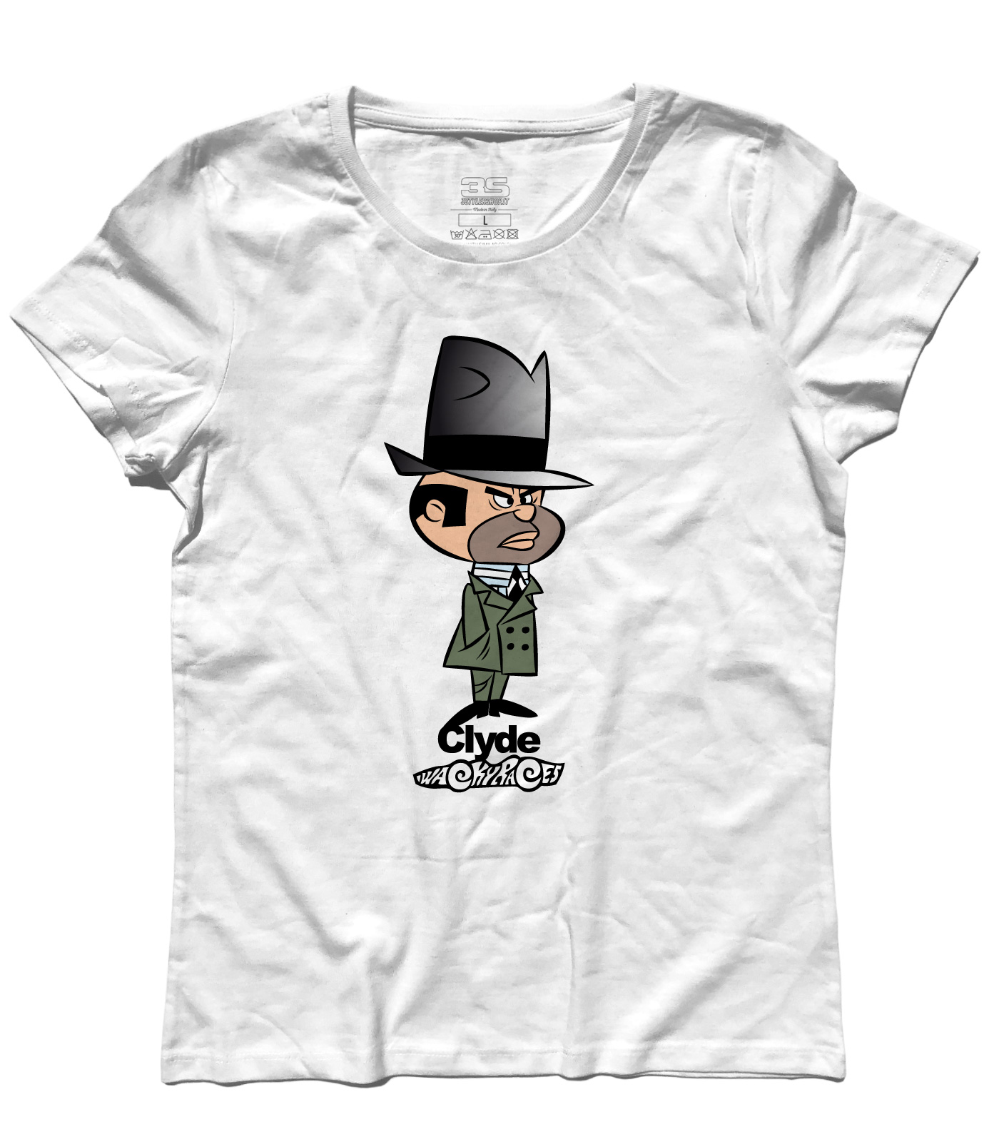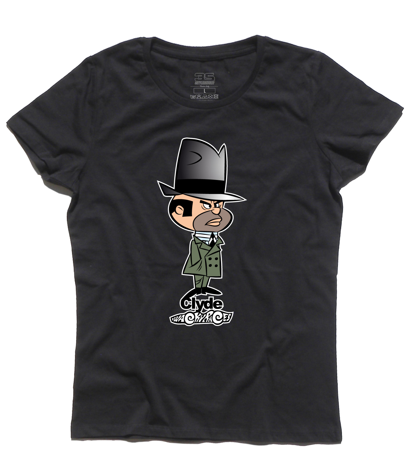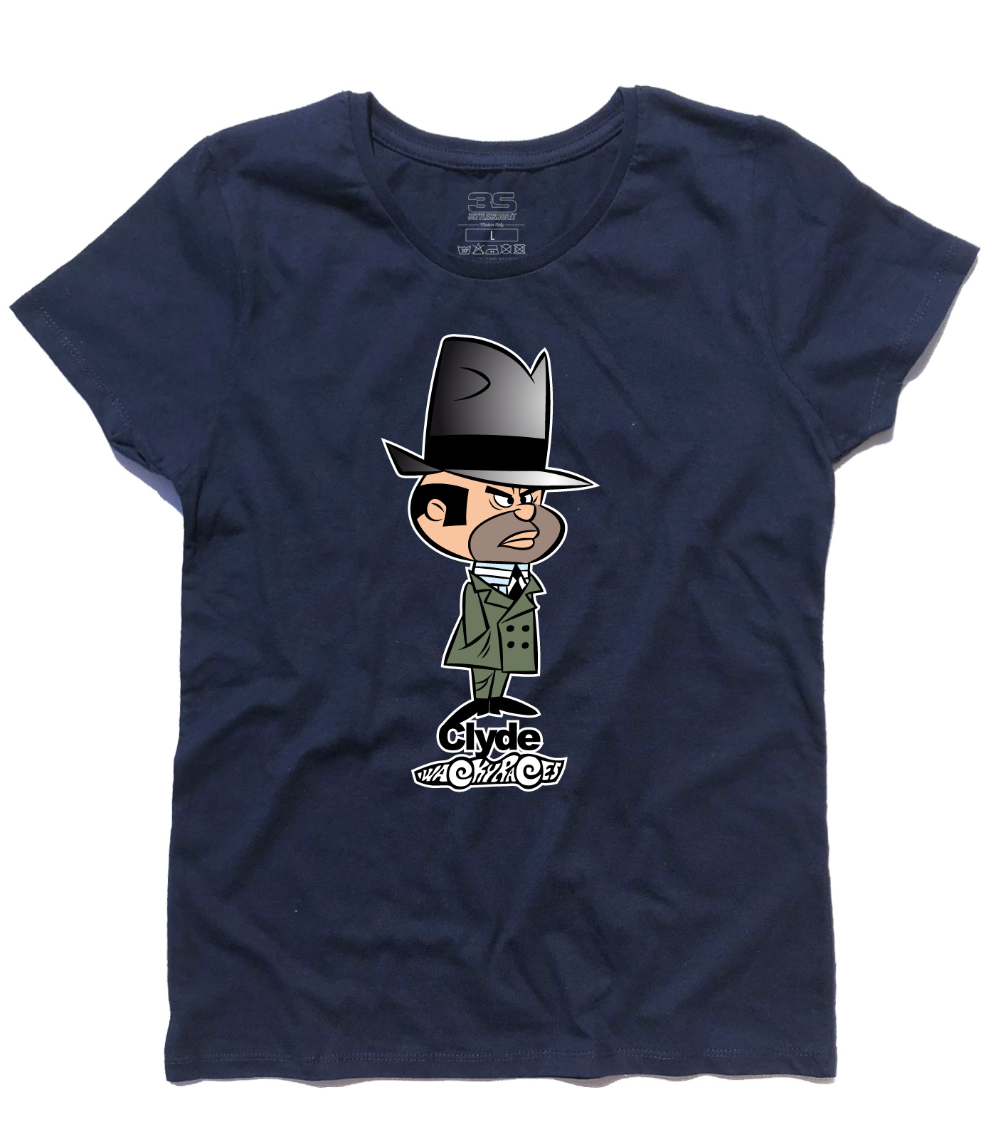 Women’s t-shirt depicting Clyde and the Ant Hill Mobs. They compete on the streets of all America, from California to New York, passing through Michigan and Florida: they are the crazy protagonists of the crazy Wacky races, the legendary cartoons that in Italy has depopulated in the 80s. With their peculiarities and their super power gadgets: on board the number 7, the Bulletproof Machine, there is Clyde and his band. This is a 20s gang made up of seven little dwarfs, on vintage cars, headed by the boss Clyde.