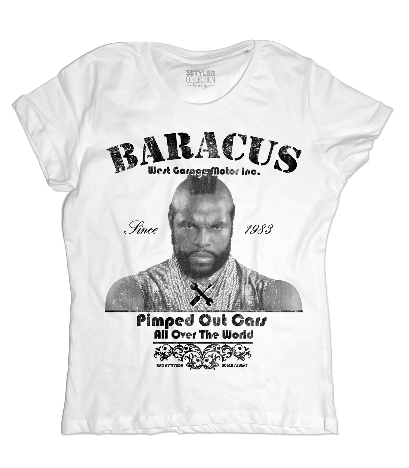 Mr. T t-shirt – T-shirt donna ispirata a PE Pessimo Elemento (BA) Baracus della famosa A-Team. Mr. T t-shirt – Women’s t-shirt inspired by Bad Element PE (BA) Baracus of the famous A-Team.