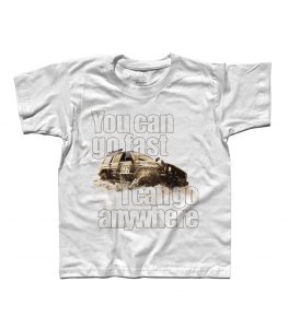 Kid’s t-shirt with a phrase that is well known in the world of off-road vehicles: “You can go fast, I can go anywhere”. Because if you have a Jeep, what matters isn’t how fast you can go, we leave these records to Ferrari. But what matters is that we can go wherever we want!