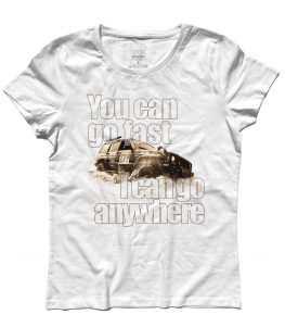 Women’s t-shirt with a phrase that is well known in the world of off-road vehicles: “You can go fast, I can go anywhere”. Because if you have a Jeep, what matters isn’t how fast you can go, we leave these records to Ferrari. But what matters is that we can go wherever we want!