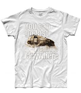 Men’s t-shirt with a phrase that is well known in the world of off-road vehicles: “You can go fast, I can go anywhere”. Because if you have a Jeep, what matters isn’t how fast you can go, we leave these records to Ferrari. But what matters is that we can go wherever we want!