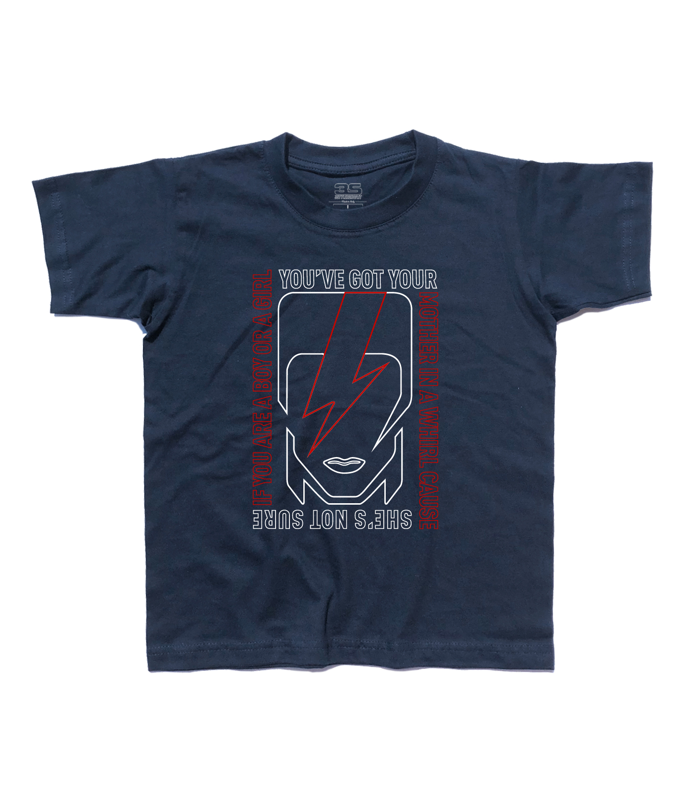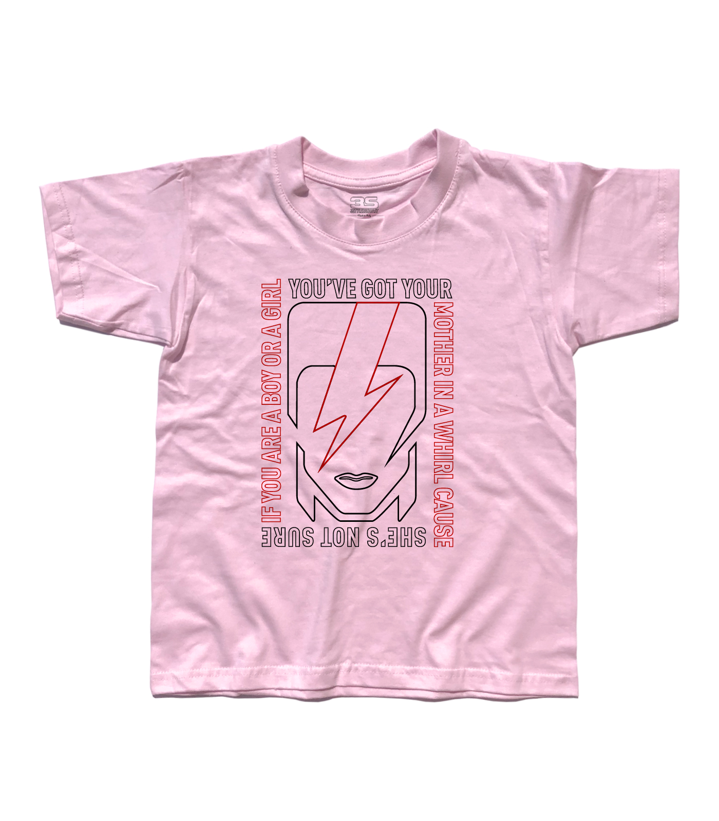 Rebel Rebel t-shirt – T-shirt bambino ispirata alla canzone Rebel Rebel di David Bowie. Rebel Rebel t-shirt – Kid’s t-shirt inspired by Rebel Rebel of David Bowie.